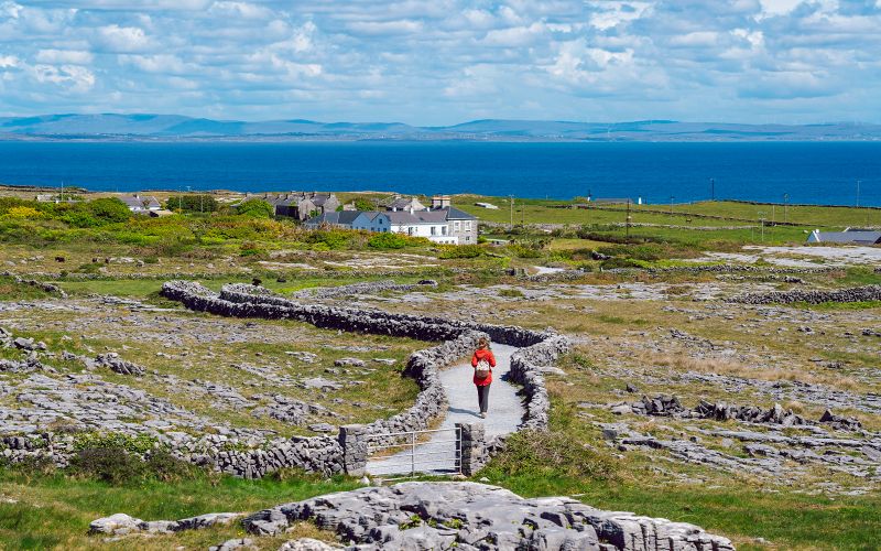 Ces chemins s’étendent sur 8 km le long de la côte, dévoilant un panorama exceptionnel sur l’Atlantique et les îles d’Aran. Depuis les plateformes aménagées, vous profitez d’une vue inoubliable, notamment par temps clair où chaque détail se révèle. Le sentier principal, entretenu par l’Office of Public Works, permet de parcourir ces falaises en toute sécurité. Prévoyez des chaussures adaptées et restez attentif aux panneaux de signalisation. Un joyau géologique.