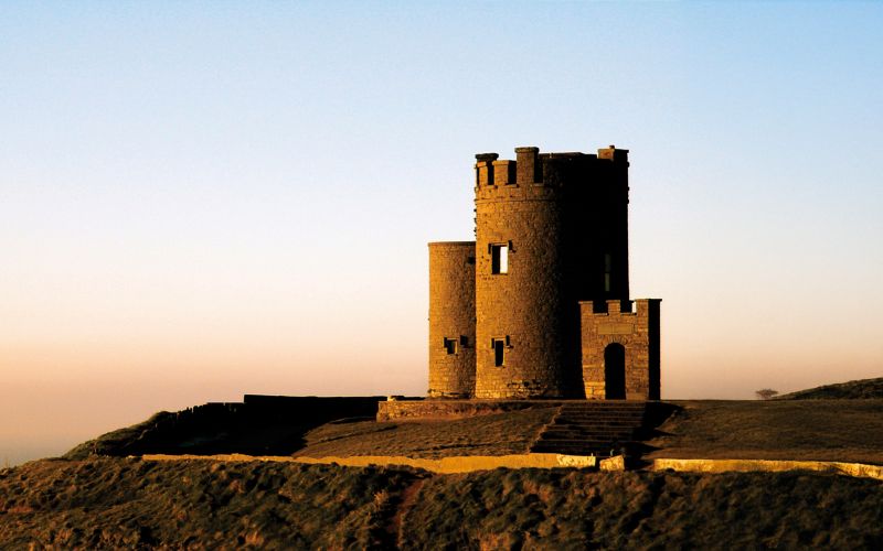 L’O’Brien’s Tower, érigée en 1835 par Cornelius O’Brien, se dresse au point culminant des falaises, à près de 214 mètres au-dessus de l’océan Atlantique. Cette construction solide en pierre servait autrefois d’observatoire pour les visiteurs venus admirer la côte sauvage. Restaurée et accessible toute l’année (sous réserve de conditions météorologiques favorables), elle offre une vue panoramique unique sur le littoral. Son architecture sobre et robuste rappelle les traditions locales anciennes.