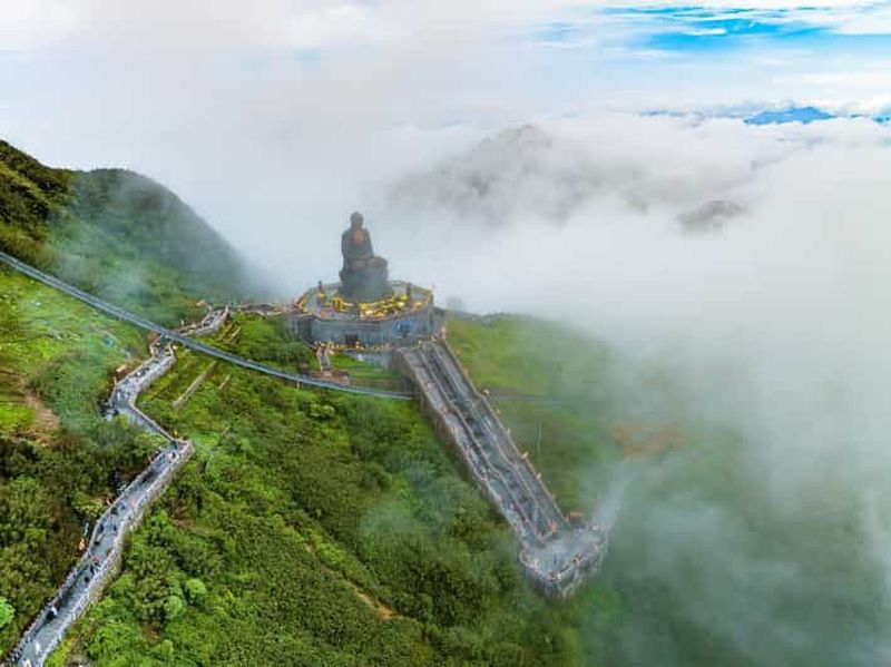 La grande statue de Bouddha, érigée en bronze, domine fièrement le paysage près du sommet. Inaugurée en 2017, elle mesure plus de 20 mètres de haut et constitue un symbole fort de spiritualité pour les visiteurs. Les artisans vietnamiens ont méticuleusement assemblé chaque pièce, témoignant d’un savoir-faire exceptionnel. Lorsque vous apercevez cette imposante sculpture, vous ressentez immédiatement le caractère sacré et paisible des lieux et l’importance spirituelle qui y règne.