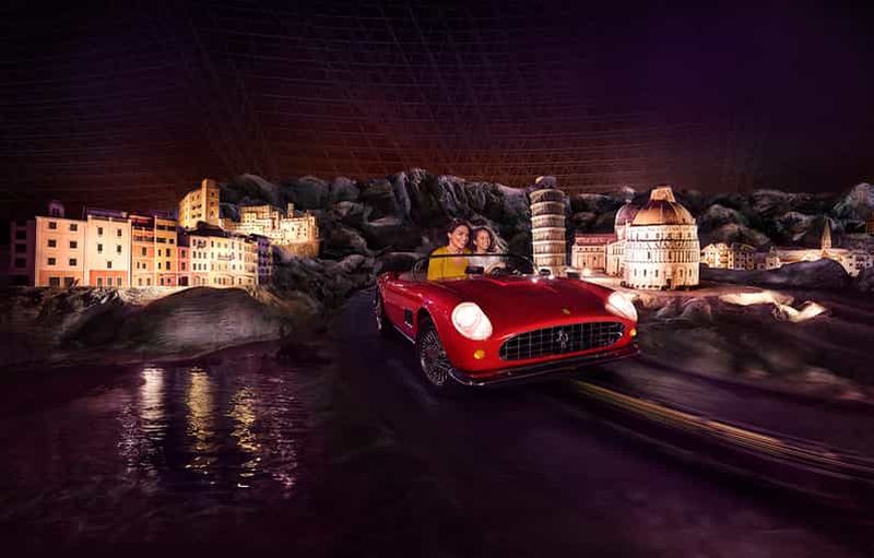 Viaggio in Italia est un cinéma volant, qui vous fait survoler les paysages italiens iconiques tels que les Alpes et la campagne toscane. Lancée en 2010, l’attraction projette des images à 180°, tandis que vos sièges s’élèvent pour renforcer l’immersion. Les effets de vent et d’odeurs complètent l’expérience sensoriale. Conçue pour rendre hommage au berceau de Ferrari, cette aventure vous offrira des panoramas uniques, dignes d’une véritable escapade en Europe.