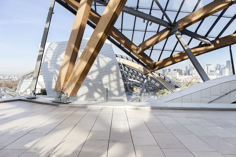 Perchées sur les niveaux supérieurs, les terrasses offrent une vue sur le Bois de Boulogne et la skyline de Paris. Elles démontrent l’attention particulière portée à l’interaction entre l’architecture et son environnement. Depuis 2014, ces espaces extérieurs, accessibles via un parcours intérieur, invitent à faire une pause en plein air. Vous pouvez y apercevoir la Tour Eiffel et examiner de près la structure audacieuse du bâtiment, telle une sculpture vivante.