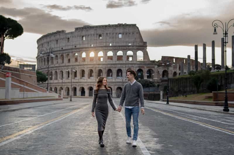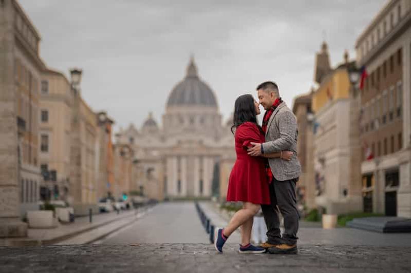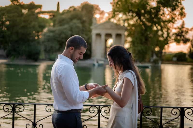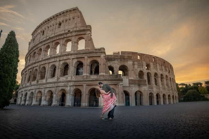 Découvrez la fontaine de Trevi, la place d'Espagne et le Pincio sous leur plus beau jour, paisibles, sans foule et baignés d'une douce lumière matinale. Recevez 60 photos retouchées dans un délai de 48 heures. Le forfait idéal pour les couples, les familles et les demandes en mariage.