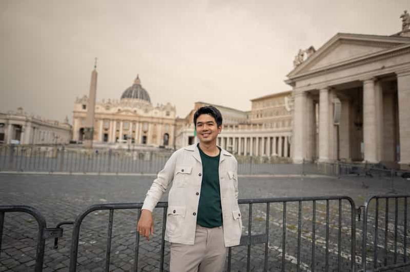Saisissez cette occasion unique à l'aube, à la fontaine de Trevi ! Soyez parmi les premiers à profiter d'une lumière parfaite et d'une foule minimale. Admirez les teintes douces et dorées, ainsi que les sculptures magnifiquement éclairées. Recevez 20 photos retouchées en moins de 24 heures