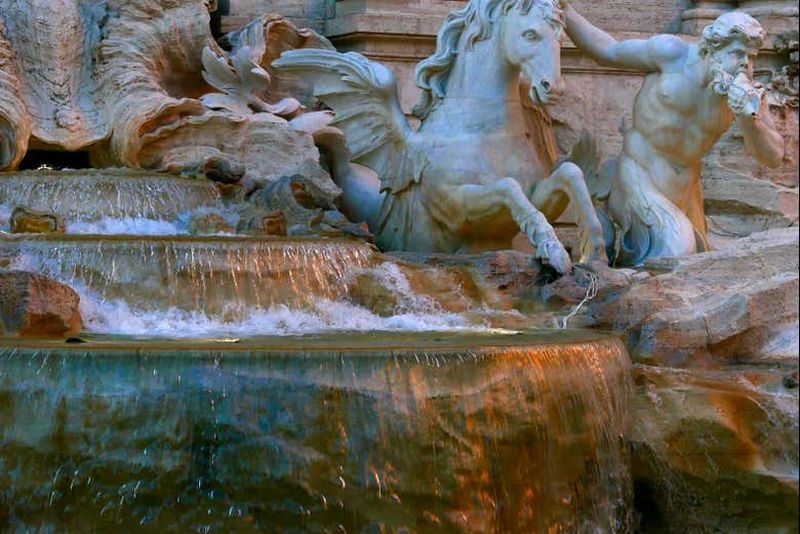La statue majestueuse d’Océanus domine la fontaine, créée au XVIIIème siècle sous la direction de l’architecte Nicola Salvi. Représentant le dieu romain des eaux, elle est encadrée de chevaux marins menés par des tritons. Ce groupe symbolise la puissance et la générosité de la mer, source de vie pour la capitale italienne. En l’observant, vous plongez au cœur de la splendeur baroque et admirez sa grandeur, reflet du génie artistique.