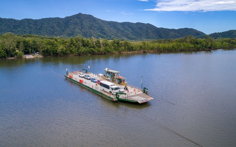 Pour rejoindre la Forêt de Daintree, la plupart des visiteurs partent de Cairns ou de Port Douglas. Depuis Cairns, il faut compter environ 2 h 30 de route en longeant la côte. Le trajet inclut la traversée du fleuve Daintree en ferry, seul moyen d’accès pour atteindre la zone forestière. Si vous venez de Port Douglas, la route est plus courte (environ 1 h 15). Des excursions guidées, des navettes touristiques et des visites organisées sont également disponibles pour ceux qui préfèrent éviter la conduite.