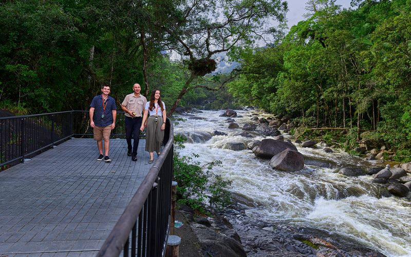 La découverte de la forêt de Daintree séduit par ses paysages spectaculaires, entre route côtière superbe, végétation luxuriante et sentiers faciles à parcourir, souvent ponctués de ruisseaux et de boardwalks immersifs. Beaucoup apprécient le calme et la beauté intacte du lieu, certains recommandant même une visite guidée pour explorer la forêt en profondeur. Plusieurs voyageurs soulignent toutefois le coût élevé du ferry et du Discovery Centre, même si des alternatives gratuites existent.