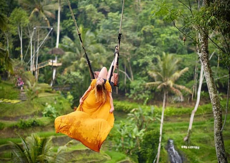 Cette option comprend un billet d'entrée à la cascade de Kampo Lampo, une expérience de balançoire dans la jungle, une visite de la rizière en terrasse de Tegalalang et une excursion dans la forêt des singes d'Ubud.