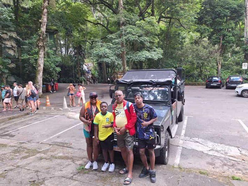 Explorez la forêt luxuriante de Tijuca lors d'une excursion en Jeep. Rafraîchissez-vous dans les eaux cristallines des p...