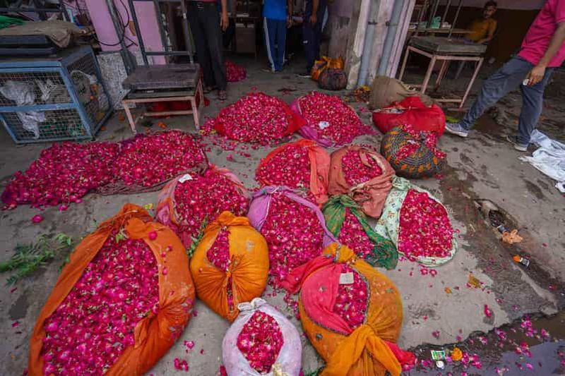 Profitez d’une demi-journée de visite à Jaipur : découvrez le marché aux fleurs animé, marquez un court arrêt à Jal Maha...