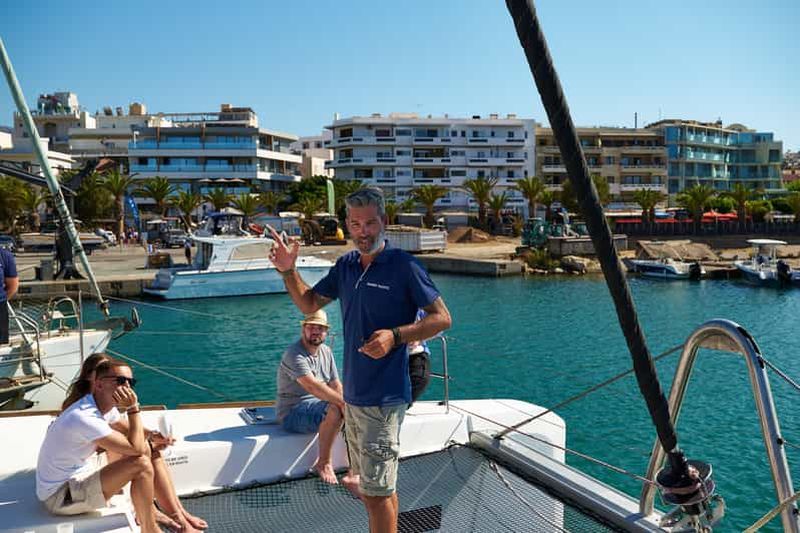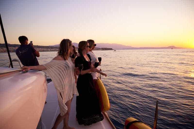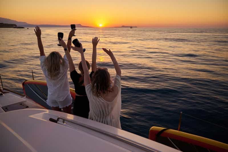 Croisière en catamaran au coucher du soleil avec transfert depuis Réthymnon