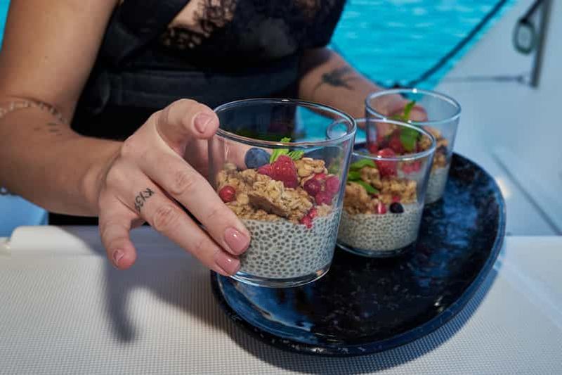 Croisière en catamaran haut de gamme à Réthymnon : déjeuner sain et bar