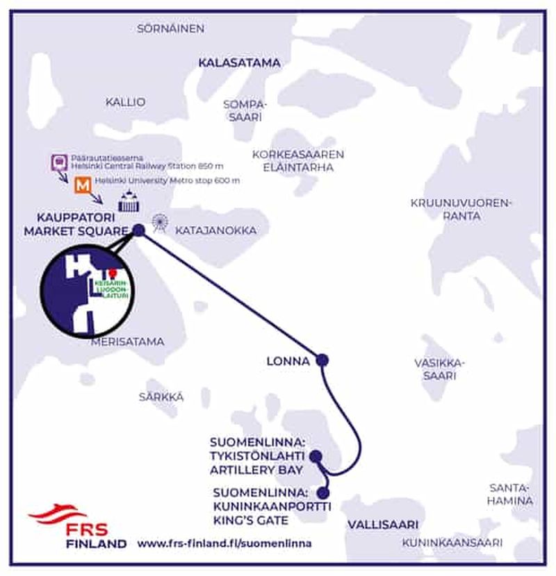Voici un aperçu des différents moyens de transport pour rejoindre la Forteresse de Suomenlinna :