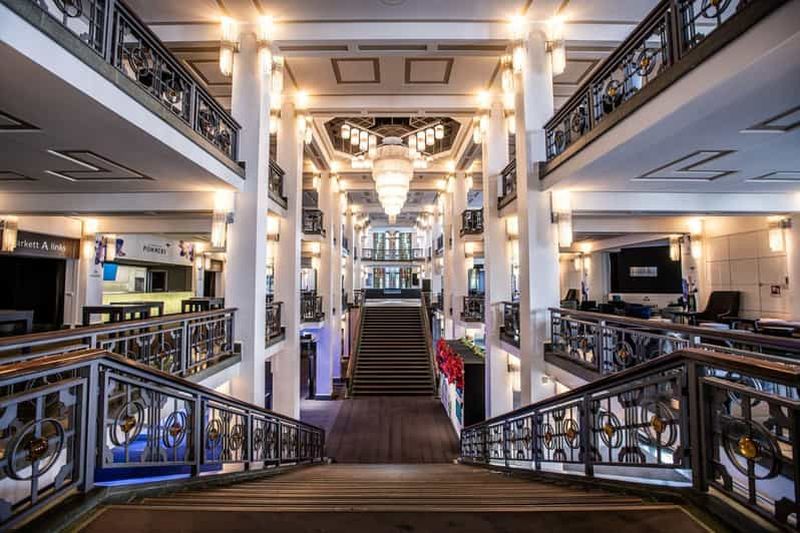 La première chose qui vous frappe en pénétrant dans le Friedrichstadt-Palast est son hall d’entrée spectaculaire. Construit en 1984 pour remplacer l’ancien bâtiment historique, cet espace accueille un lustre monumental pesant plus de deux tonnes. Ses innombrables cristaux scintillent au-dessus des spectateurs, évoquant l’histoire prestigieuse du lieu. Grâce à son plafond élevé et à son agencement spacieux, ce hall vous plonge immédiatement dans l’atmosphère unique de ce temple du divertissement.