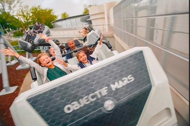 Objectif Mars, ouvert en 2020, est le premier grand huit du Futuroscope, conçu pour vous préparer à un voyage spatial. À bord de wagons tournoyants, vous testez votre résistance aux conditions extrêmes de l’espace, entre champs électromagnétiques et température fluctuante. Les décors et la scénographie vous envoient en pleine exploration cosmique. L’attraction s’adresse aux aventuriers en quête de vitesse, tout en restant accessible aux familles souhaitant vivre de nouvelles émotions.