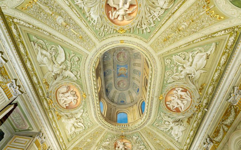 Cette galerie spectaculaire du XVIIIe siècle illustre parfaitement le faste des grandes familles romaines. Les miroirs monumentaux se répondent le long des murs, créant des jeux de lumière qui magnifient les dorures et les stucs. Autrefois destinée aux réceptions princières de la famille Pamphilj, elle témoigne de l’architecture baroque tardive dans toute sa splendeur. Les portraits et fresques qui ornent les parois prennent une dimension supplémentaire grâce à ces effets visuels, transformant la promenade en expérience immersive.