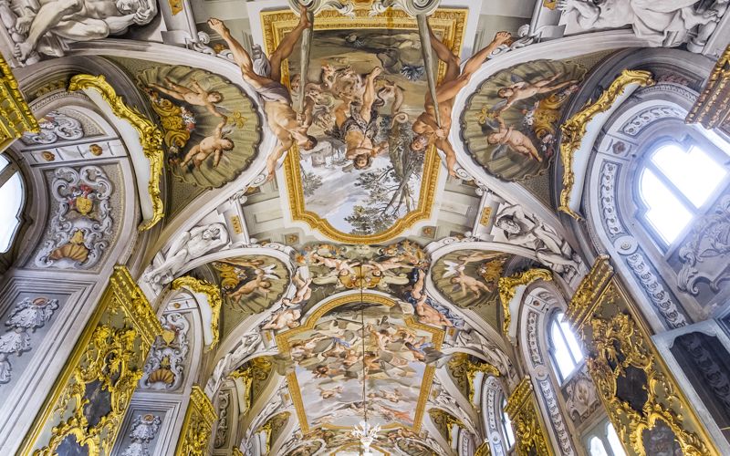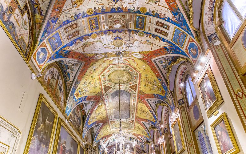 Cette galerie spectaculaire du XVIIIe siècle illustre parfaitement le faste des grandes familles romaines. Les miroirs monumentaux se répondent le long des murs, créant des jeux de lumière qui magnifient les dorures et les stucs. Autrefois destinée aux réceptions princières de la famille Pamphilj, elle témoigne de l’architecture baroque tardive dans toute sa splendeur. Les portraits et fresques qui ornent les parois prennent une dimension supplémentaire grâce à ces effets visuels, transformant la promenade en expérience immersive.