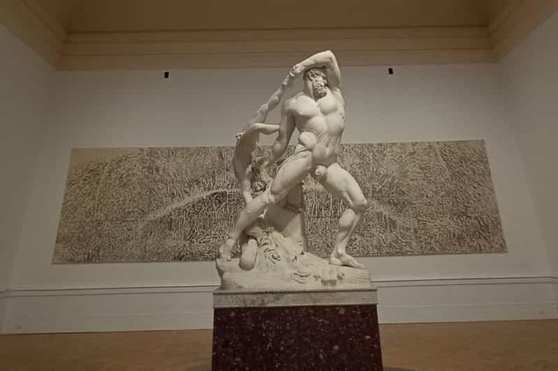 L’imposante sculpture Hercule et Lichas, réalisée par Antonio Canova entre 1795 et 1815, concentre toute la virtuosité du maître néoclassique. Le marbre blanc capte l’instant tragique où Hercule, fou de douleur, projette violemment son serviteur Lichas dans les airs. La tension dramatique du groupe, l’équilibre audacieux des corps et la finesse d’exécution témoignent du génie sculptural de Canova et marquent un tournant dans l’art italien du début du XIXe siècle.