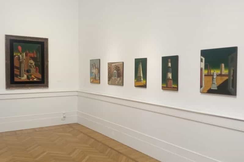 Giorgio de Chirico, inventeur de la peinture métaphysique au début du XXe siècle, déploie ici ses univers énigmatiques. Places vides baignées d’ombres allongées, architectures silencieuses et perspectives troublantes composent ces scènes suspendues hors du temps. L’atmosphère onirique et inquiétante de ces toiles a directement nourri l’imaginaire surréaliste et continue de fasciner par son mystère intact.