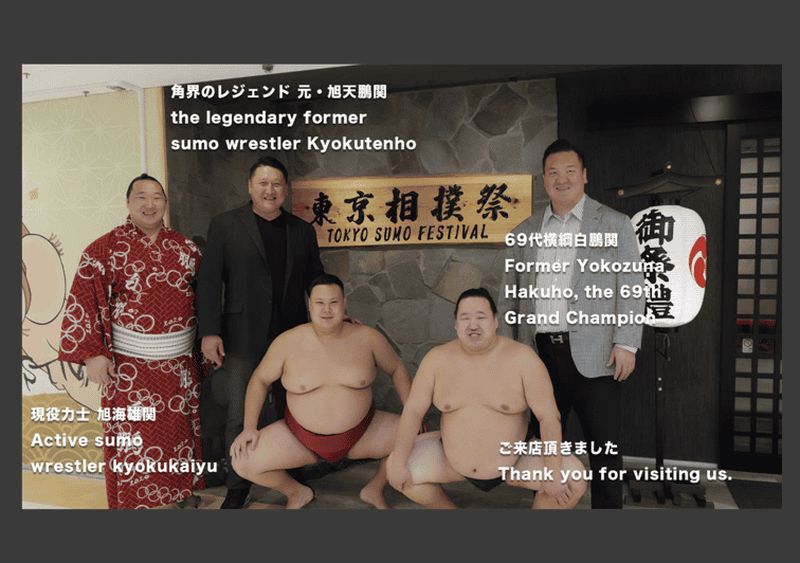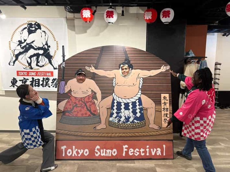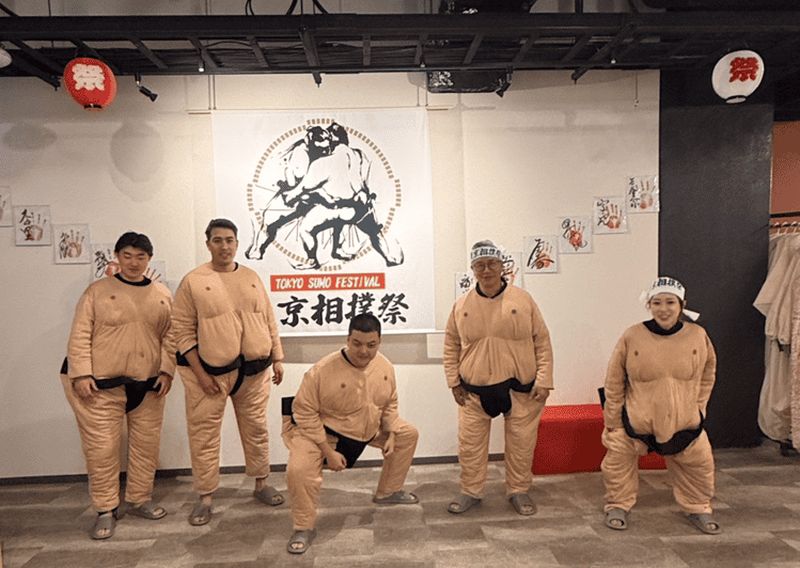 Spectacle de sumo de sumo Défiez un ancien lutteur de sumo (les participants peuvent être sélectionnés par tirage au sort en cas de nombre élevé de candidats) Essayez le sumo stomping (Shiko) Découvrez le lancer de sel Entraînez-vous à la collision corporelle du sumo Boisson de bienvenue incluse