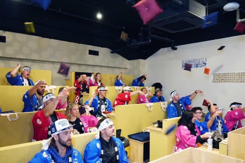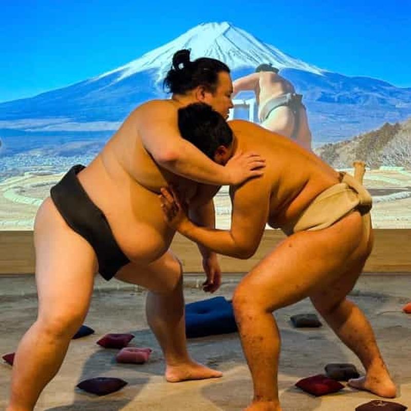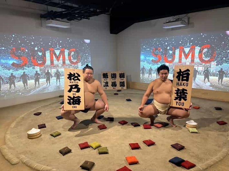Spectacle de sumo de divertissement Défiez un ancien lutteur de sumo (les participants peuvent être sélectionnés par tirage au sort en cas de nombre élevé de candidats) Essayez le sumo stomping (Shiko) Découvrez le lancer de sel Entraînez-vous à la collision corporelle du sumo Boisson de bienvenue incluse