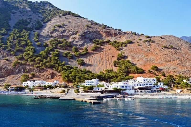 Après plusieurs heures de marche, vous atteignez Agia Roumeli, charmant village côtier situé à l’embouchure des gorges. Ici, la mer Libyenne vous tend les bras pour un moment de détente mérité. La plage de galets, bordée par des eaux cristallines, est idéale pour se rafraîchir après l’effort. Vous trouverez sur place quelques tavernes servant une cuisine crétoise traditionnelle. De là, vous pouvez repartir en bateau vers Chóra Sfakíon ou Sougia.