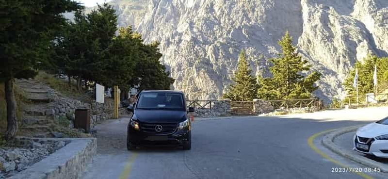 Choisissez cette option pour une visite privée dans une Mercedes de luxe au départ des régions de Rethymno/Panormo/Kavro. Après la fin de la randonnée, vous utiliserez le bateau commun pour rejoindre le port avant de monter à bord d'un minibus privé.