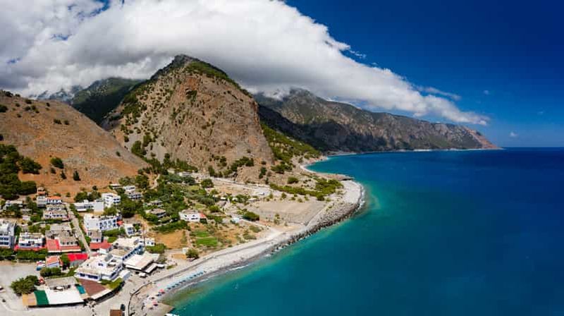 Après plusieurs heures de marche, vous atteignez Agia Roumeli, charmant village côtier situé à l’embouchure des gorges. Ici, la mer Libyenne vous tend les bras pour un moment de détente mérité. La plage de galets, bordée par des eaux cristallines, est idéale pour se rafraîchir après l’effort. Vous trouverez sur place quelques tavernes servant une cuisine crétoise traditionnelle. De là, vous pouvez repartir en bateau vers Chóra Sfakíon ou Sougia.