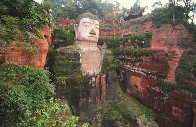 Commencée en 713 sous la dynastie Tang, la construction du Bouddha a nécessité près de 90 ans pour s’achever. Le projet était mené par un moine bouddhiste nommé Haitong, animé par le souhait de calmer les eaux tumultueuses des rivières Minjiang, Dadu et Qingyi. L’énorme statue mesure environ 71 mètres de haut, ce qui en fait à l’époque, et jusqu’à récemment, la plus grande sculpture de Bouddha en pierre du monde.