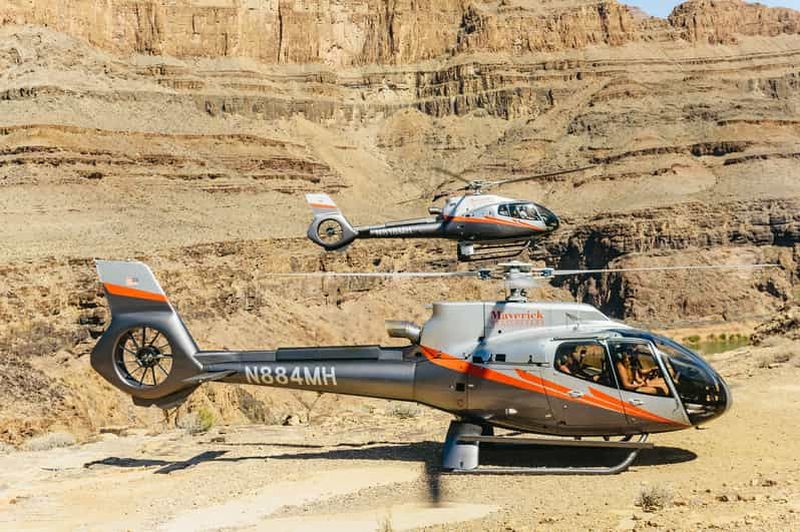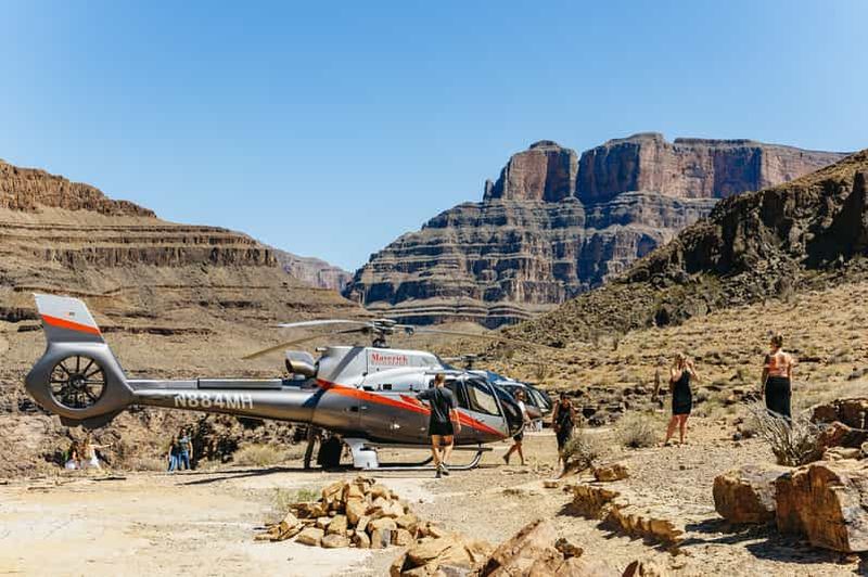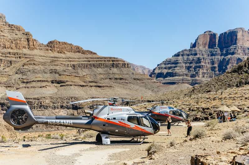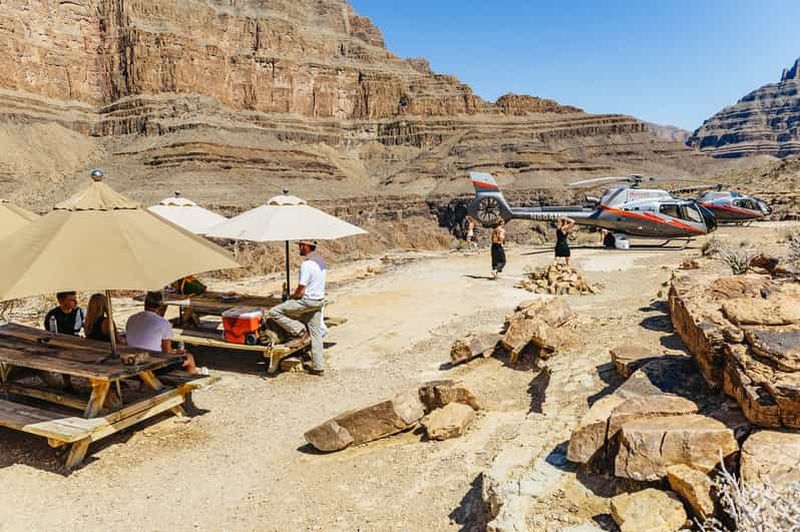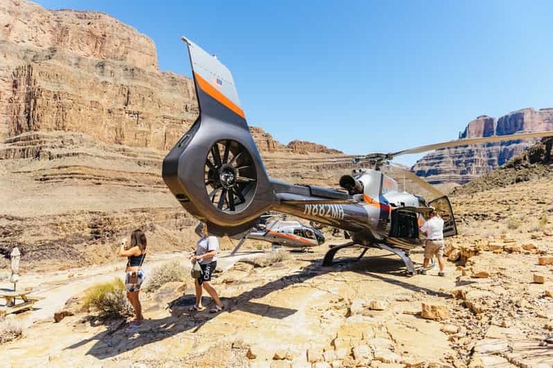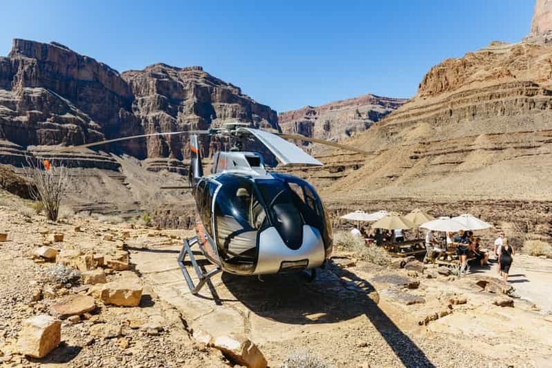 Vol en hélicoptère et atterrissage dans le Grand Canyon avec champagne et collation légère.