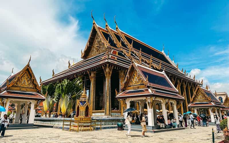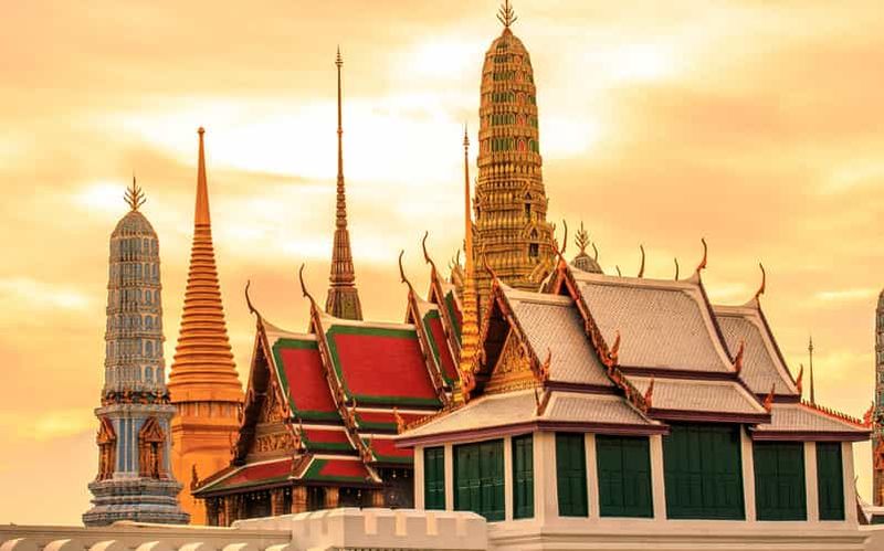 Explorez le Grand Palais, un complexe de bâtiments au cœur de Bangkok, lors d'une visite guidée avec transfert à l'hôtel...