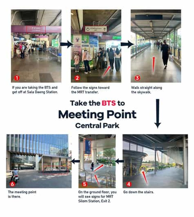 **Lieu de rendez-vous : Central Park Bangkok, entrée principale au rez-de-chaussée. **Accès facile par BTS (station Sala Daeng) ou MRT (station Silom, sortie 2). **Visite en petit groupe pour une expérience fluide et confortable.