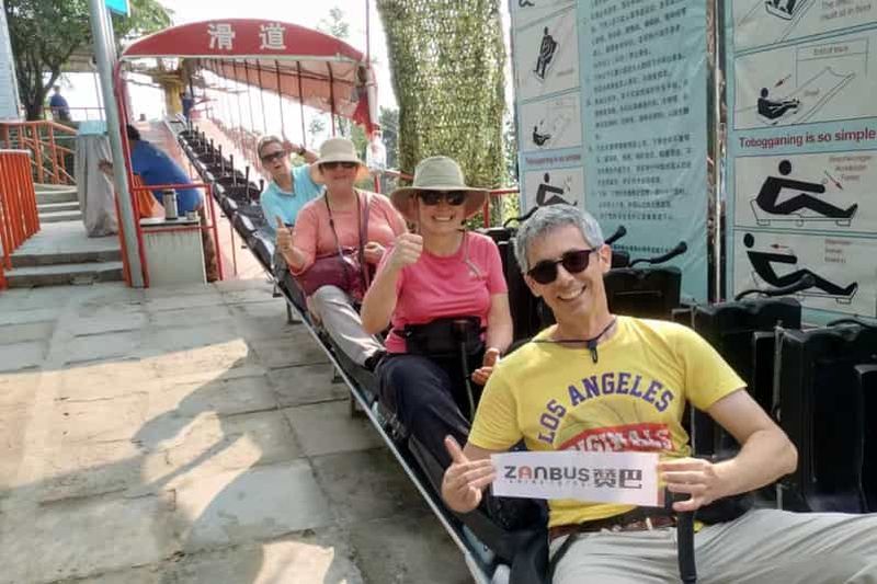 Après l’exploration de la muraille, offrez-vous un moment de divertissement en empruntant la célèbre descente en toboggan de Mutianyu. S’étirant sur plus de mille mètres, ce parcours sinueux vous fera dévaler la pente à votre rythme. Vous vivrez une expérience unique, mêlant frissons et panoramas saisissants. N’oubliez pas votre élan.