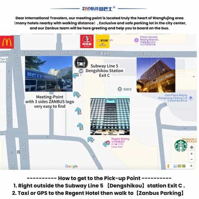Grande Muraille de Mutianyu (4 heures) + Palais d'été (3 heures) Durée : 9-10 heures Départ : 7h30, retour : vers 17h30 (tous les jours) Lieu de prise en charge : parking de l'hôtel Regent, métro ligne 5 [station Dengshikou], sortie C Lieu de retour : métro ligne 8, station Olympic Green