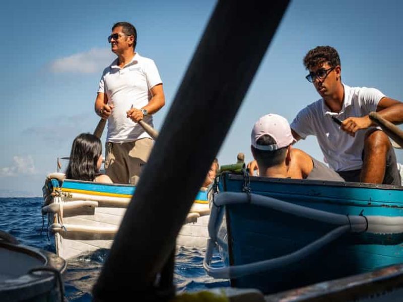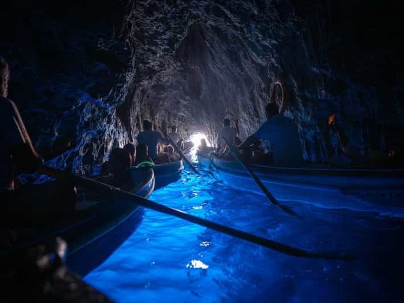 La balade en barque commence par le passage à travers une petite ouverture rocheuse, située à environ deux mètres au-dessus du niveau de la mer. Pour y accéder, il faut généralement s’allonger dans la barque afin de franchir l’accès étroit, utilisé depuis l’époque romaine. Le moment en lui-même ne dure que quelques minutes. Mais il demeure incontournable pour découvrir la magie et les reflets de la cavité.