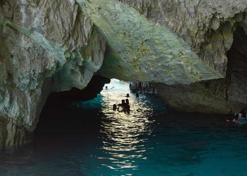 La balade en barque commence par le passage à travers une petite ouverture rocheuse, située à environ deux mètres au-dessus du niveau de la mer. Pour y accéder, il faut généralement s’allonger dans la barque afin de franchir l’accès étroit, utilisé depuis l’époque romaine. Le moment en lui-même ne dure que quelques minutes. Mais il demeure incontournable pour découvrir la magie et les reflets de la cavité.