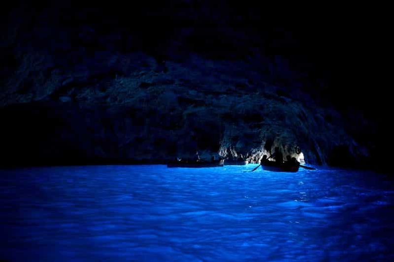 La balade en barque commence par le passage à travers une petite ouverture rocheuse, située à environ deux mètres au-dessus du niveau de la mer. Pour y accéder, il faut généralement s’allonger dans la barque afin de franchir l’accès étroit, utilisé depuis l’époque romaine. Le moment en lui-même ne dure que quelques minutes. Mais il demeure incontournable pour découvrir la magie et les reflets de la cavité.