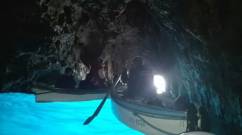 La balade en barque commence par le passage à travers une petite ouverture rocheuse, située à environ deux mètres au-dessus du niveau de la mer. Pour y accéder, il faut généralement s’allonger dans la barque afin de franchir l’accès étroit, utilisé depuis l’époque romaine. Le moment en lui-même ne dure que quelques minutes. Mais il demeure incontournable pour découvrir la magie et les reflets de la cavité.