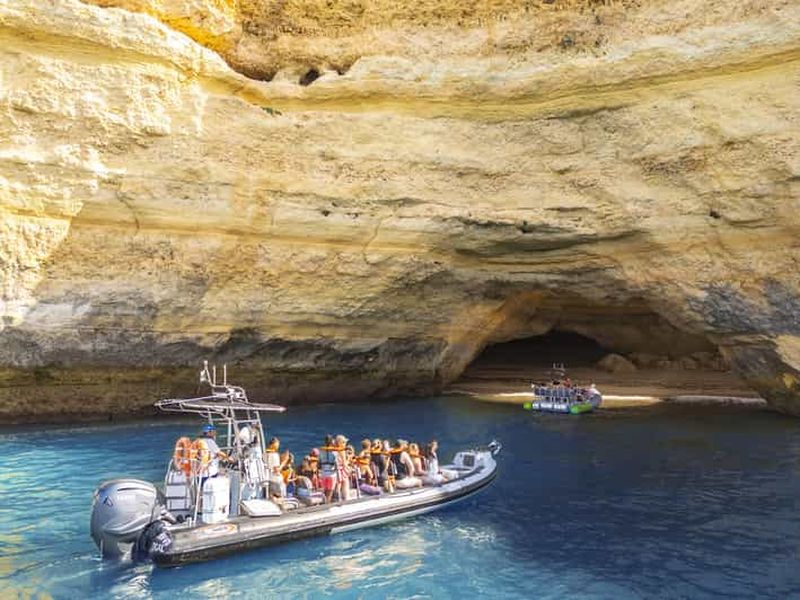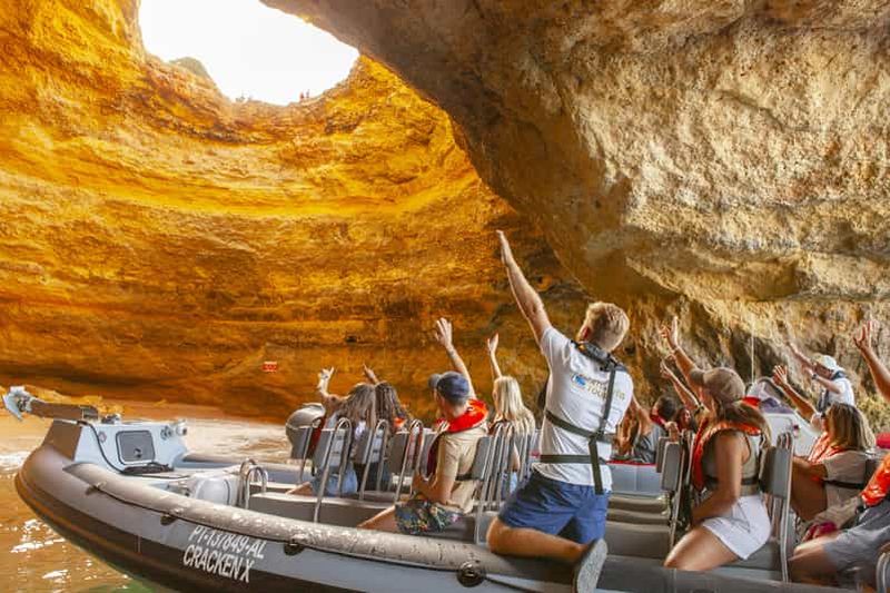 Découvrez le littoral de l'Algarve et les célèbres grottes de Benagil lors de cette sortie en bateau semi-rigide au dépa...
