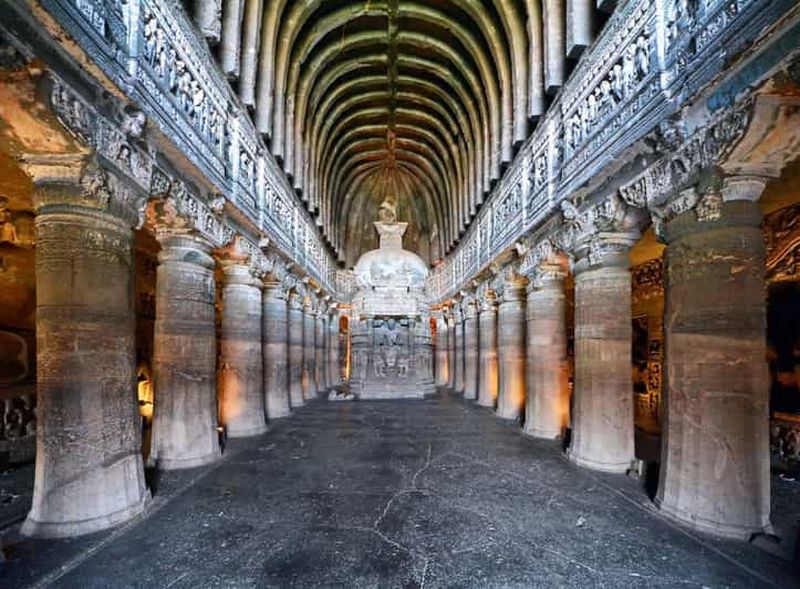 La grotte numéro 3, appelée Chaitya, se distingue par son immense salle de culte aux majestueuses colonnes. Ce vaste espace abrite un grand stupa, emblème spirituel du bouddhisme. En parcourant cette nef taillée dans la roche, vous apprécierez l’architecture harmonieuse rendant hommage aux profondes pratiques contemplatives et inspirantes de l’époque.