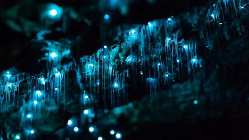 Ces fameux « vers luisants » sont en réalité les larves d’une mouche indigène : Arachnocampa luminosa. Leur luminescence s’explique par un phénomène biochimique qui leur sert à attirer de petites proies. Vous admirerez alors d’innombrables points lumineux dans l’obscurité.