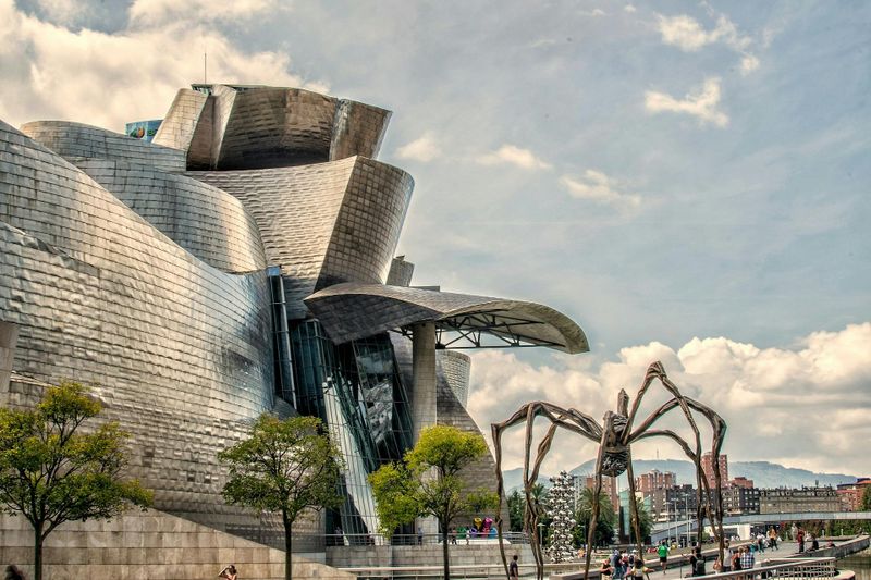 L’architecte Frank Gehry fut choisi pour concevoir le bâtiment, qui deviendrait rapidement une icône de l’architecture moderne. Sa structure est constituée de titanium, de calcaire et de verre, des matériaux qui lui confèrent une silhouette unique et reflètent les couleurs changeantes de la ville. L’édifice révolutionnaire est le symbole du renouveau de Bilbao, attirant des millions de visiteurs chaque année.