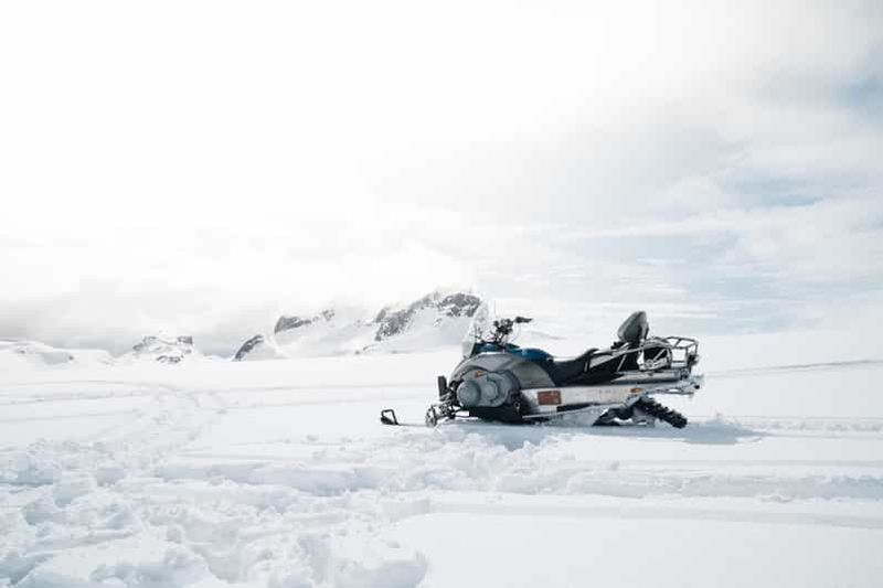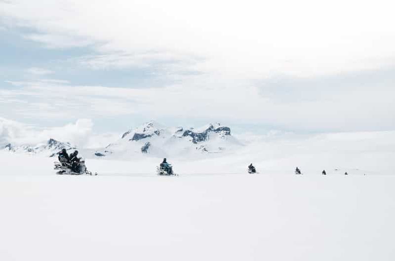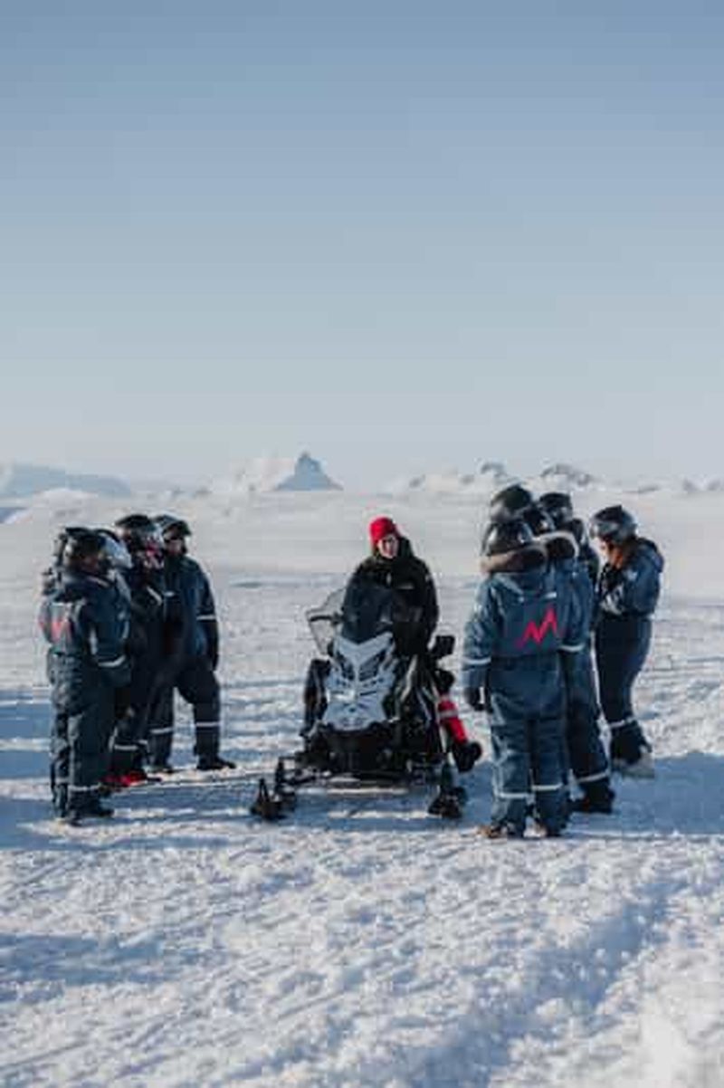 Découvrez les paysages glaciaires de l'Islande en motoneige lors d'une excursion d'une heure à partir de la chute d'eau ...