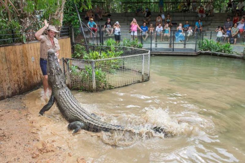 Le spectacle d’attaque de crocodiles, lancé dans les années 1980, lorsqu’Hartley’s Crocodile Adventures a initié ses premières démonstrations éducatives. Devant un public sécurisé, les spécialistes montrent comment ces géants d’eau douce et marine réagissent lorsqu’ils saisissent leur proie. Vous découvrez leur force redoutable, tout en apprenant le rôle crucial qu’ils jouent dans l’écosystème. Cette présentation sensibilise à la cohabitation responsable entre l’homme et les crocodiles, emblèmes de la faune australienne.