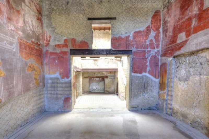 La Maison de Neptune et d’Amphitrite, la Maison des Cervi, la Maison Sannitica et la Maison de l’Atrium Mosaïqué illustrent la vie élégante des habitants d’Herculanum. Construites majoritairement au Ier siècle, elles révèlent des fresques colorées, des mosaïques somptueuses et une architecture sophistiquée. Les détails témoignent du statut social élevé de leurs propriétaires. Vous pourrez observer l’intérieur luxueux, conservé par les cendres, offrant un aperçu unique du mode de vie romain.