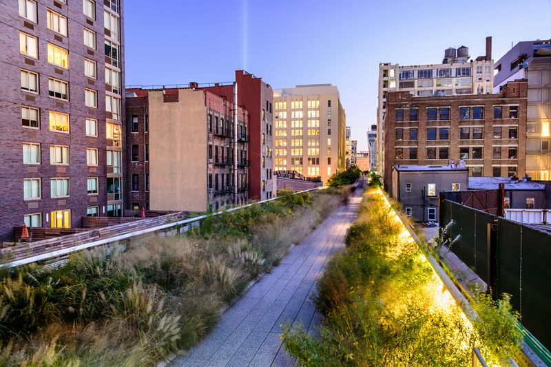 Les belvédères de la High Line, tels que le fameux 10th Avenue Square & Overlook et le 26th Street Viewing Spur, offrent des panoramas saisissants sur l’Hudson River et la skyline new-yorkaise. Construits pour valoriser la vue, ils accueillent également des performances artistiques occasionnelles. Prenez le temps d’y faire une pause photo et, en soirée, d’observer le fort contraste entre la nature préservée du parc et l’animation urbaine qui l’entoure.