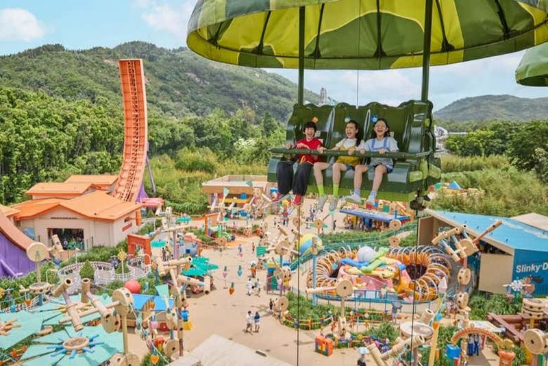 Toy Soldier Parachute Drop, lancé en 2011, vous propulse dans l’univers des petits soldats verts. Vous monterez à bord d’un parachute, hissé à plus de 25 mètres, avant d’être lâché dans une descente contrôlée. Cette attraction offre des sensations pour un large public, tout en proposant une vue panoramique sur Toy Story Land. Son design militaire et son rythme d’ascension en font un incontournable pour les fans de la franchise.