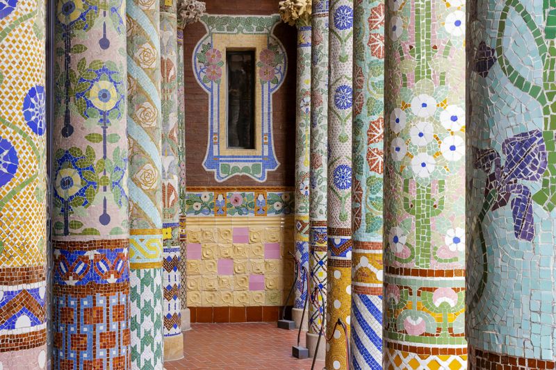 Partout dans le complexe, les éléments modernistes ravissent les amateurs d’art et d’histoire. Mosaïques colorées, céramiques aux motifs géométriques, vitraux majestueux, sculptures allégoriques et reliefs décoratifs transforment chaque pavillon en véritable chef-d’œuvre. Influencés par la nature, ces ornements reprennent des formes végétales et animales, reflétant la créativité de l’Art Nouveau catalan. Développée pour apaiser les patients, cette ornementation contribue à faire de Sant Pau un lieu unique de patrimoine moderniste.