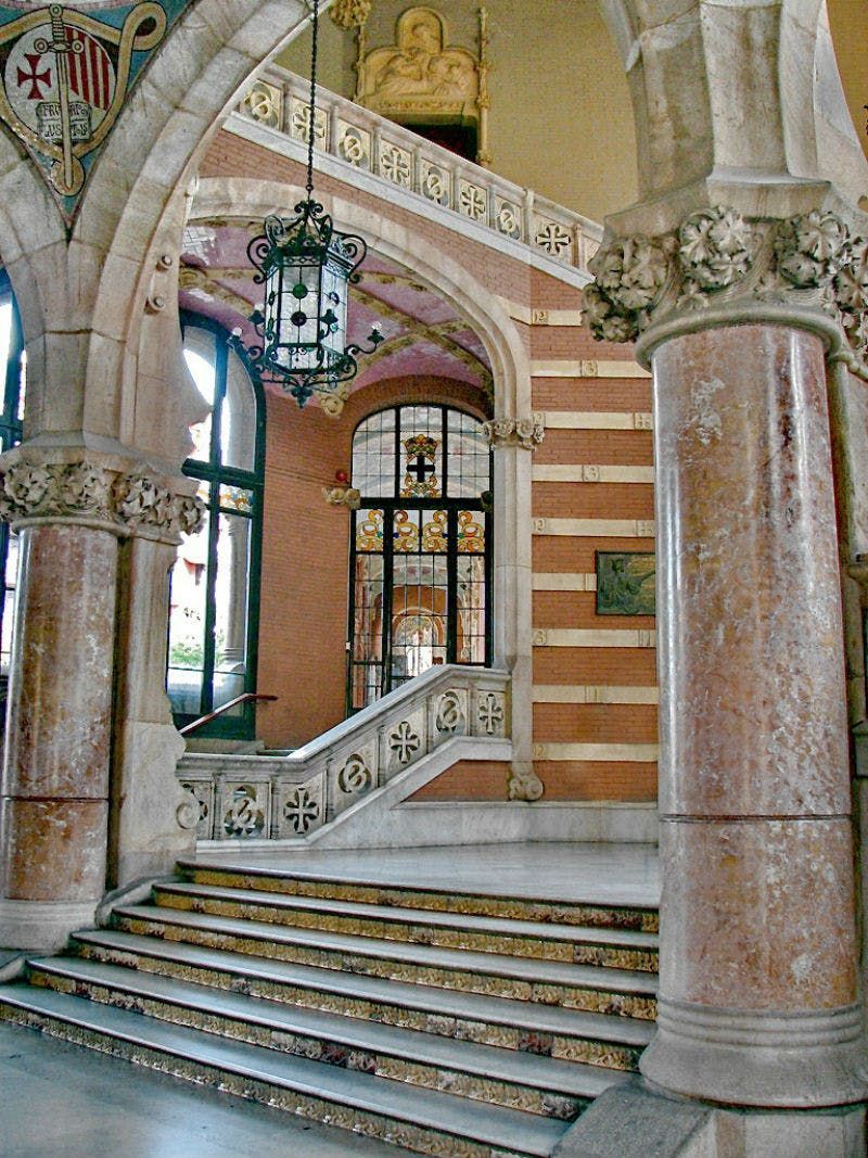 Le Pavillon Sant Rafael, achevé en 1912, illustre la fusion entre fonctionnalité hospitalière et esthétique moderniste. Sa façade, décorée de mosaïques représentant des motifs végétaux, met en valeur la lumière naturelle grâce à de vastes baies vitrées. À l’intérieur, détail d’ornementation contribue à une ambiance chaleureuse favorisant le bien-être des patients. Aujourd’hui restauré, il permet de mieux comprendre l’ingéniosité architecturale de Domènech i Montaner au cœur du projet Sant Pau.