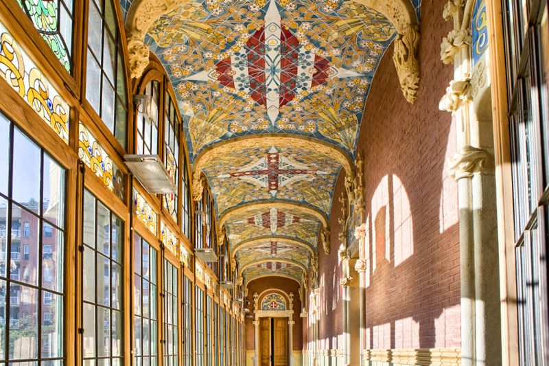 En déambulant dans les pavillons, vous remarquerez les mosaïques colorées et les vitraux finement travaillés, rendant hommage aux symboles chrétiens et à l’âme catalane. Cette approche artistique, voulue par Lluís Domènech i Montaner, sert aussi une fonction pédagogique : illustrer les principes médicaux et spirituels qui incarnent l’ancienne mission de l’établissement.