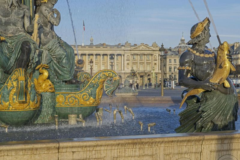 La majestueuse façade, dessinée par Ange-Jacques Gabriel, s’aligne harmonieusement avec celle de l’Hôtel de Crillon, créant un bel ensemble architectural. Colonnes, frontons et proportions étudiées renforcent l’équilibre visuel qui distingue la place de la Concorde. Cette symétrie emblématique illustre le talent de Gabriel, maître incontesté de l’urbanisme au siècle des Lumières.
